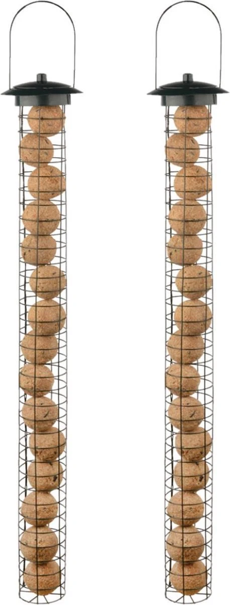 2x morceaux de grande mangeoire à oiseaux pour grosses boules en métal 83 cm. Vous pouvez facilement placer jusqu’à environ 15 boules de graisse dans ce silo de nourriture pour oiseaux. Le silo mangeoire à oiseaux est facile à accrocher à une branche ou à un crochet. Dimensions : environ 12 x 12 x 83 cm. Matériau : métal.