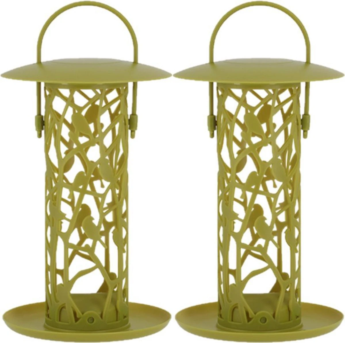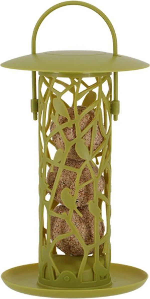 2x silo mangeoire à oiseaux avec plateau pour boules de graisse, plastique vert 27 cm. Silo d’alimentation avec plateau où les oiseaux peuvent se reposer paisiblement. Vous pouvez facilement placer 3 boules de graisse dans ce silo de nourriture pour oiseaux en faisant glisser le couvercle vers le haut. Le nichoir est facile à accrocher à une branche ou à un crochet. Dimensions : environ 14 x 14 x 27 cm. Matière : plastique.