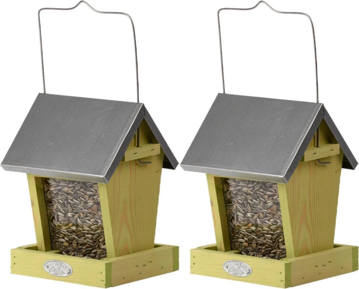 2x nichoir/silo d’alimentation avec deux compartiments en bois 22 cm. Cette maison de nourriture pour oiseaux suspendue a deux compartiments sĂ©parĂ©s dans lesquels vous pouvez mettre de la nourriture pour oiseaux. Un cĂ´tĂ© est Ă©quipĂ© de plexiglas qui convient pour Ă©taler les aliments, l’autre cĂ´tĂ© est Ă©quipĂ© de gaze qui rend ce cĂ´tĂ© plus adaptĂ©, par exemple, aux noix. Le nichoir est facile Ă accrocher Ă une branche ou Ă un crochet. Dimensions : environ 15 x 16 x 22 cm. Matière : bois, mĂ©tal, plexiglas, maille.