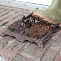 La brosse à chaussures est l’ustensile de base de l’entretien des chaussures. Ce gratte bottes permettra de débarrasser vos bottes et chaussures de la boue et autres salissures ramenées du jardin ou des balades en pleine nature. Nettoyez facilement vos chaussures et vos bottes avec ce brosse bottes en fonte.