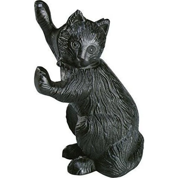 Cale-porte noir en fonte représentant un chat qui joue.