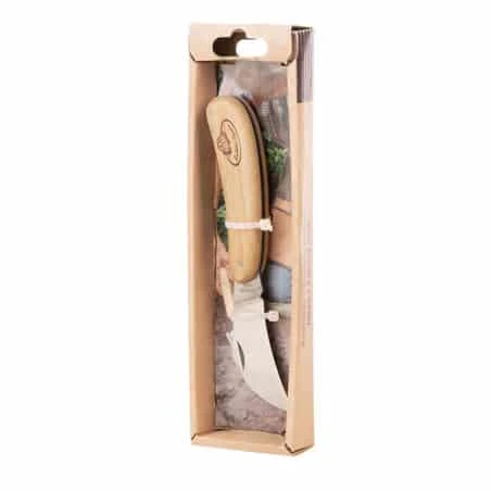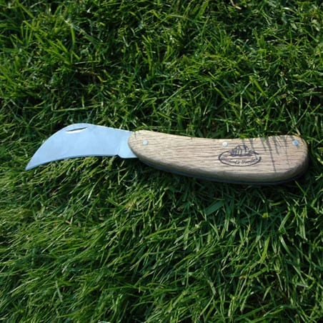 Couteau serpette en acier inoxydable avec un manche en frêne et une lame rétractable. Un couteau très utile et très résistant pour couper fleurs, herbes, brindilles. Un couteau conçu pour durer.
