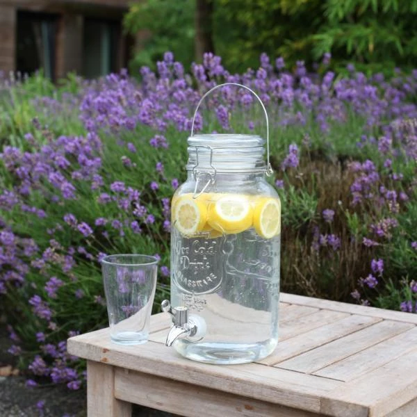 Distributeur de jus de fruits chouette et original, sur le modèle d’un bocal weck extra grand. Ce distributeur de jus de fruits est dotĂ© d’un couvercle Ă bascule, d’une poignĂ©e et d’un robinet pratique.