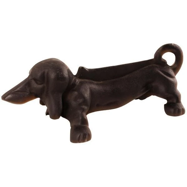 Joli gratte-pieds en fonte en forme de teckel, un chien très apprécié.