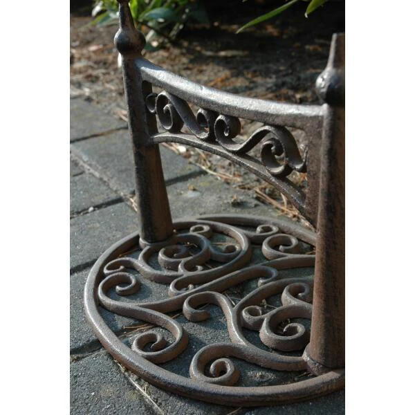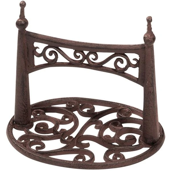 Beau grattoir en fonte pour chaussures. L’objet, décoratif, a la forme d’une ellipse.