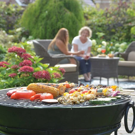 Grille pour barbecue en acier avec mini pieds et supports pour retirer la grille des braises.