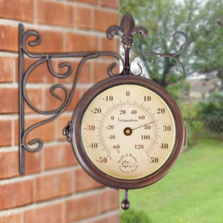 L’Horloge Extérieure avec Thermomètre combine fonctionnalité et style pour ajouter une dimension pratique et décorative à votre espace extérieur.