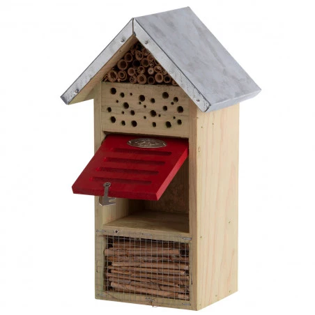 Cet hôtel à insectes permet de fournir un abri aux insectes qui luttent contre les parasites du jardin. Un geste simple et naturel pour préserver la faune utile à notre environnement. Viendront y habiter les abeilles, les carabes, les syrphes qui sont des insectes utiles au développement de la flore, des fruits et légumes de votre jardin (ils se nourrissent notamment des pucerons ou chenilles et aiment se blottir dans les trous, les branchages, la paille ).