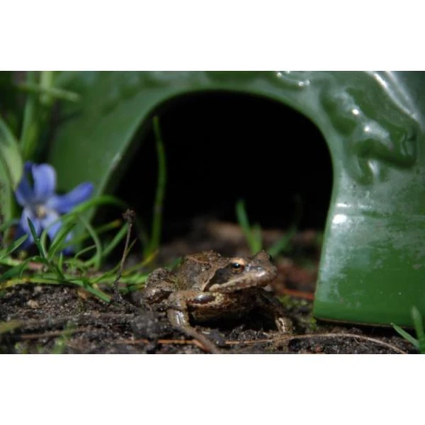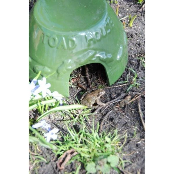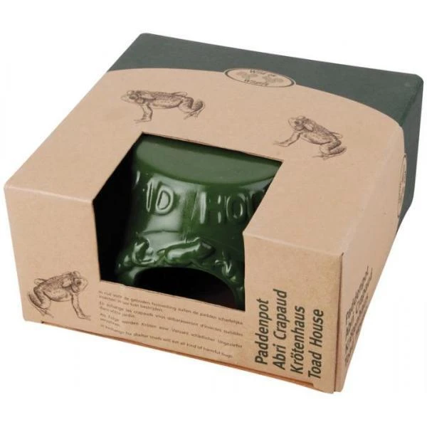 Dieses dunkelgrüne Krötenhaus aus Keramik wurde speziell entwickelt, um nützlichen Gartentieren wie Kröten und Fröschen einen Unterschlupf zu bieten und sie in den Garten zu locken. Im Gegenzug für den Unterschlupf fressen die Frösche und Kröten Schnecken und schädliche Insekten (Würmer, Larven, Spinnen, Käfer, Stechmücken, Fliegen, Ameisen usw.) in Ihrem Garten. Pro Tag verdrücken sie leicht 50 Insekten.