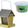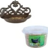 Mangeoire à oiseaux et abreuvoir en céramique blanche 21 cm comprenant de la nourriture pour oiseaux énergétique 4 saisons. Cette mangeoire et abreuvoir pour oiseaux contient deux compartiments, un pour la nourriture pour oiseaux avec trou de drainage et un pour l’abreuvoir. Le bol est décoré de deux petits oiseaux sur le côté. La nourriture est très nutritive et contient toutes les protéines et vitamines nécessaires pour toutes sortes d’oiseaux de jardin. Les ingrédients de la nourriture à saupoudrer sont composés de manière à pouvoir être nourris aux oiseaux toute l’année. Dimensions : environ 16 x 21 x 8 cm. Matière: céramique. composé de 1x Nourriture pour oiseaux Food scatter food energy seau 4 saisons 2,5 litres, 1x Mangeoire pour oiseaux et abreuvoir en céramique blanche 21 cm