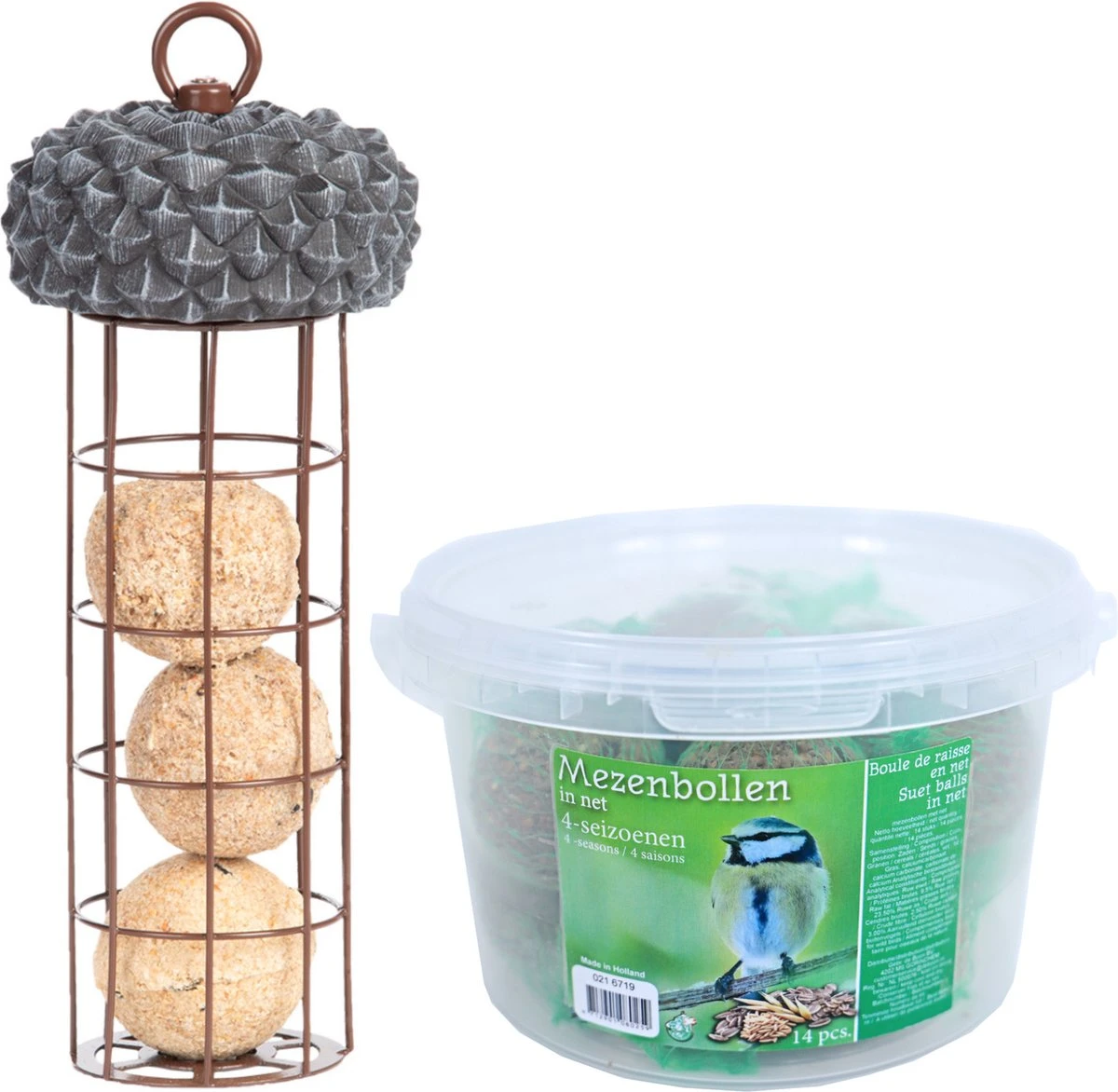 Silo à Vogel avec couvercle gland comprenant 14 boules de graisse. Vous pouvez facilement placer des boules de graisse dans le silo de nourriture pour oiseaux en dévissant la bague sur le couvercle en gland et en retirant le couvercle. Le nichoir est facile à accrocher à une branche ou à un crochet. Les boules de graisse sont particulièrement nutritives et fournissent toutes les protéines et vitamines nécessaires à toutes sortes d’oiseaux de jardin. Les ingrédients des boules de graisse sont composés de manière à pouvoir être nourris aux oiseaux toute l’année. Taille du silo d’alimentation : environ 10 x 10 x 28 cm. Silo d’alimentation en matière : métal, PVC. composé de 1x 14 pièces de nourriture pour oiseaux boules de mésanges 4 saisons, 1x silo de nourriture Vogel avec couvercle en gland pour boules de graisse métal/pvc 28 cm