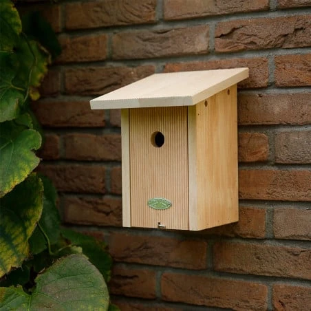 En hiver, ce nichoir leur fournira souvent un endroit pour se cacher des intempĂ©ries. Avec ses parois de 18 mm d’Ă©paisseur il possède une isolation parfaite. Son toit en pente permet Ă l’eau de s’Ă©couler et protège du vent et de la pluie. Sa face avant est articulĂ©e pour un nettoyage facile. Les trous de ventilation Ă©vitent la surchauffe et permettent le drainage dans le fond. La face intĂ©rieure est rugueuse et la face avant est pourvue de rainures pour aider les jeunes oiseaux Ă sortir facilement du nichoir.