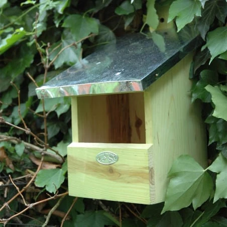 Nichoir Rouge Gorge en bois, toit en Zinc pour le confort des oiseaux qui apprécieront sans nul doute ce refuge.
