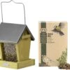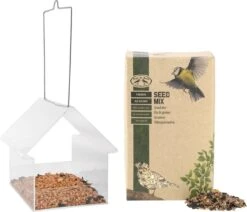 Nichoir/table d’alimentation en plastique transparent 15 cm avec nourriture pour oiseaux. Cette maison de nourriture pour oiseaux suspendue est facile à accrocher à une branche ou à un crochet. Parce que la maison est transparente, vous pouvez garder un œil sur les oiseaux. La nourriture est très nutritive et contient toutes les protéines et vitamines nécessaires pour toutes sortes d’oiseaux de jardin. Dimensions du nichoir : environ 15 x 14 x 15 cm. Matériau du nichoir : plastique. composé de 1x Vogel scatter food 2,5 kg, 1x Birdhouse / table d’alimentation en plastique transparent 15 cm
