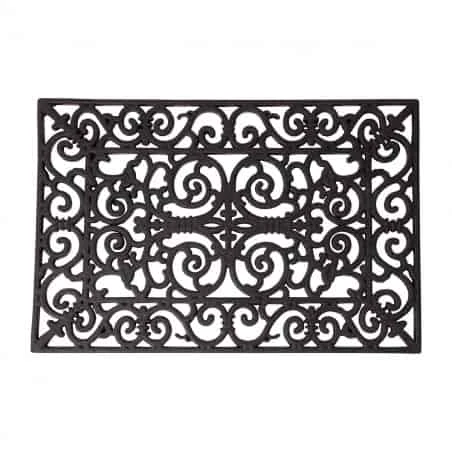 Ce tapis en caoutchouc rectangulaire possède de magnifiques ornements. Ce tapis en caoutchouc a un design victorien classique avec des boucles gracieuses. L’avantage d’un paillasson entièrement en caoutchouc est qu’il se nettoie facilement en le rinçant sous un robinet ou un tuyau. Il peut s’utiliser en intĂ©rieur comme en extĂ©rieur.