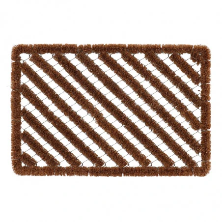 Ce paillasson en fil de fer et aux poils en fibre de coco est robuste et parfait pour décrasser les semelles.