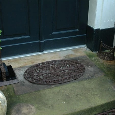 Paillasson en fonte pour votre entrĂ©e. Avec près de 6 kg de fonte, votre paillasson n’est pas près de s’user ! Vente en ligne sur Pretajardiner.com. Ce grand paillasson en fonte, de forme ovale, habillera votre entrĂ©e très naturellement, en apportant un esprit très chaleureux et typĂ© « ancien ».