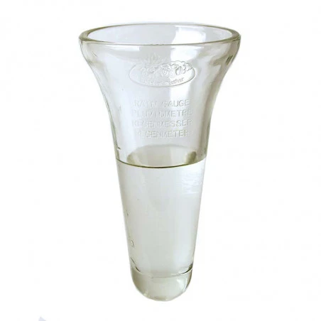 Pluviomètre en verre graduĂ©, pied en mĂ©tal et finition en zinc d’une hauteur de 1,30 m?