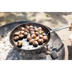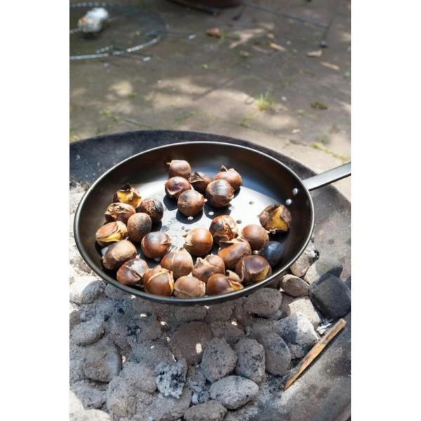 Grâce au long manche de 50 cm en acier, faites cuire les marrons sans danger au-dessus d’un feu ouvert, d’un brasero ou à la maison dans le feu ouvert. La poêle ressemble à une poêle traditionnelle mais avec des trous.