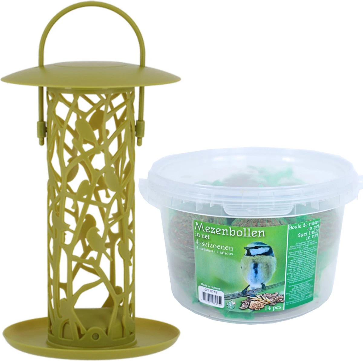 Silo à Vogel avec bac plastique vert 27 cm comprenant 14 boules de graisse. Silo d’alimentation avec plateau où les oiseaux peuvent se reposer paisiblement. Vous pouvez facilement placer 3 boules de graisse dans le silo de nourriture pour oiseaux en faisant glisser le couvercle vers le haut. Le nichoir est facile à accrocher à une branche ou à un crochet. Les boules de graisse sont particulièrement nutritives et fournissent toutes les protéines et vitamines nécessaires à toutes sortes d’oiseaux de jardin. Les ingrédients des boules de graisse sont composés de manière à pouvoir être nourris aux oiseaux toute l’année. Taille du silo d’alimentation : environ 14 x 14 x 27 cm. Matériau du silo d’alimentation : plastique. composé de 1x 14 morceaux de nourriture pour oiseaux pour boules de mésanges 4 saisons, 1x Silo d’alimentation Vogel avec plateau pour boules de graisse, plastique vert 27 cm
