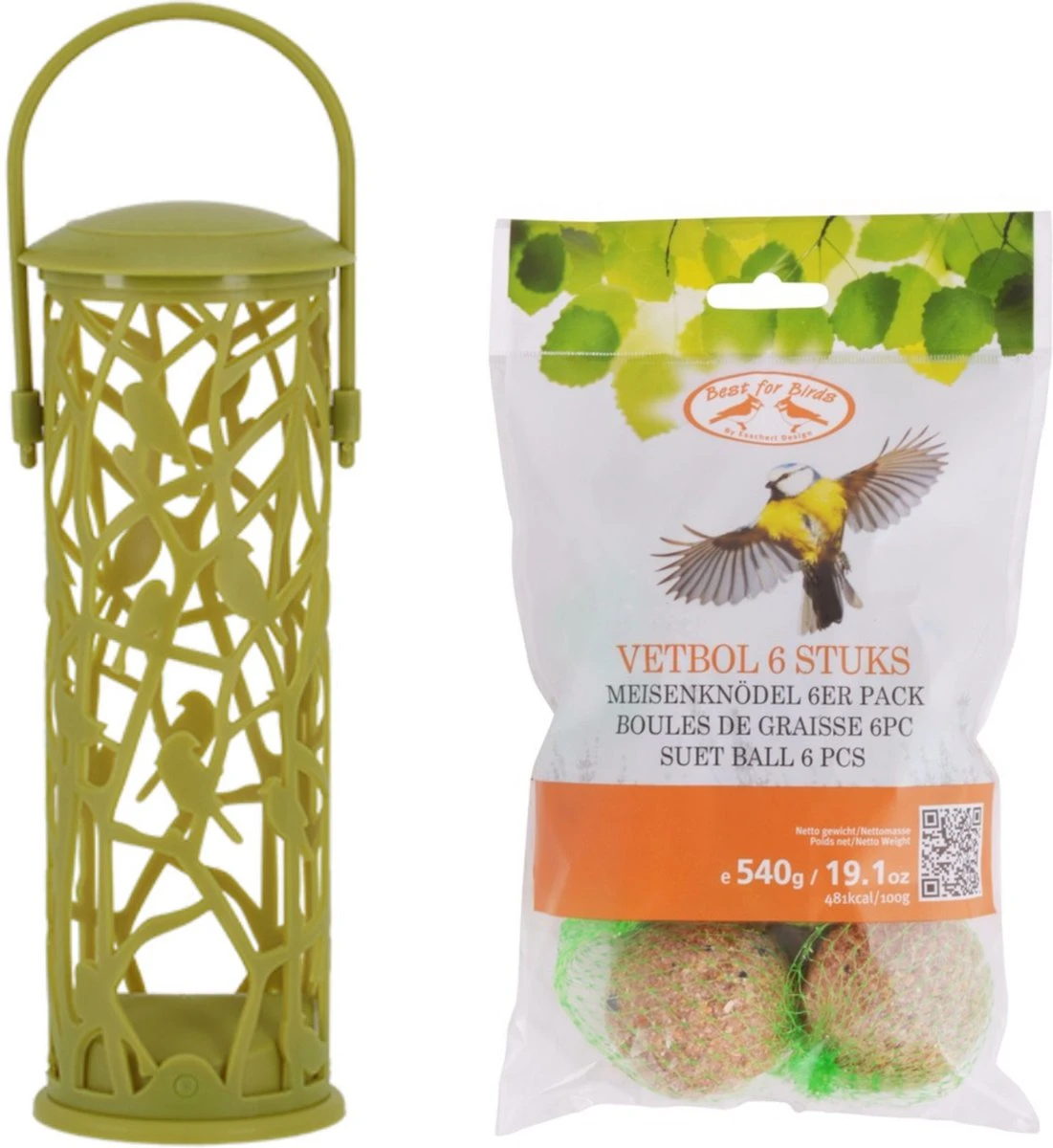 Silo à Vogel en plastique vert 27 cm comprenant 6 boules de graisse. Vous pouvez facilement placer 3 boules de graisse dans le silo de nourriture pour oiseaux en faisant glisser le couvercle vers le haut. Le nichoir est facile à accrocher à une branche ou à un crochet. Les boules de graisse sont particulièrement nutritives et fournissent toutes les protéines et vitamines nécessaires à toutes sortes d’oiseaux de jardin. Les ingrédients de ces boules de graisse sont composés de manière à pouvoir être nourris aux oiseaux tout l’hiver et se composent de blé, de farine de maïs, de graines de sorgo, de millet et de suif. Taille du silo d’alimentation : environ 8 x 8 x 27 cm. Matériau du silo d’alimentation : plastique. composé de 1x Boules de graisse pour oiseaux d’hiver 6x pièces, 1x Silo d’alimentation pour Vogel pour boules de graisse en plastique vert 27 cm