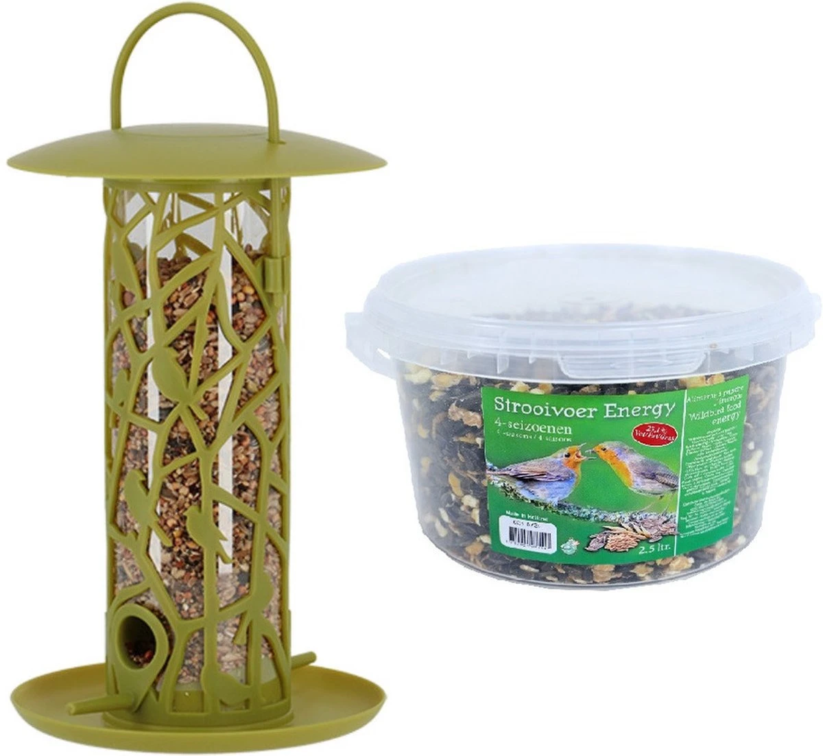 Silo à Vogel avec perchoirs et plateau en plastique vert 27 cm comprenant de la nourriture pour oiseaux énergétique 4 saisons. Vous pouvez facilement placer de la nourriture pour oiseaux dans ce silo de nourriture pour oiseaux en faisant glisser le couvercle vers le haut. Le nichoir est facile à accrocher à une branche ou à un crochet. La nourriture est particulièrement nutritive et fournit toutes les protéines et vitamines nécessaires à toutes sortes d’oiseaux de jardin. Dimensions mangeoire : environ 14 x 14 x 27 cm. Matériau de la mangeoire : plastique. composé de 1x Nourriture pour oiseaux food scatter food energy seau 4 saisons 2,5 litres, 1x silo à Vogel avec perchoirs et plateau en plastique vert 27 cm