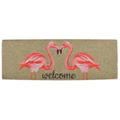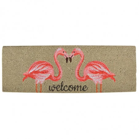 Accueil original pour vos invitĂ©s grâce Ă ce tapis d’entrĂ©e aux motifs de flamands roses ! Mais ce n’est pas tout, le format est aussi original pour ce tapis en coco. Avec une partie caoutchouc formant des flamands roses, pas de doute, votre voisin n’aura pas le mĂŞme. Ce format permet de l’utiliser dans votre entrĂ©e ou sur les marches de votre escalier.
