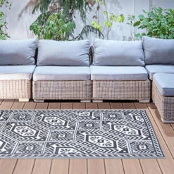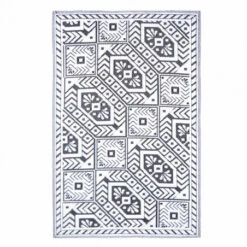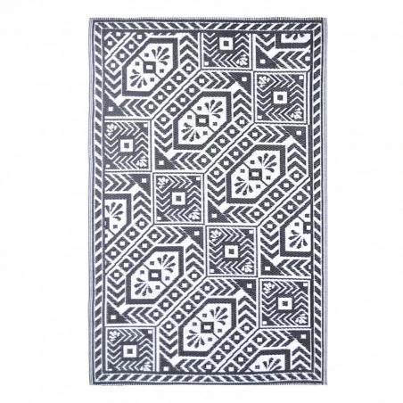 Ce joli tapis rectangulaire noir et blanc apporte une touche de fantaisie à votre extérieur avec son motif graphique tendance. Très léger, ce tapis réversible se déplace facilement selon vos envies ou la météo. Très confortable pour marcher à pieds nus, ce tapis nécessite peu d’entretien.