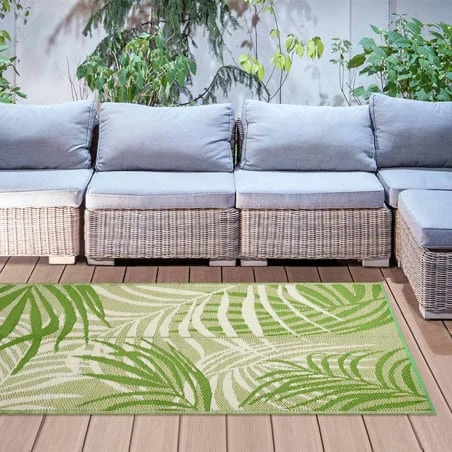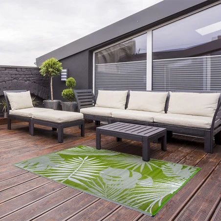 Ses motifs de grandes feuilles tropicales apportent une touche de soleil et de chaleur, et il est en plus spécialement conçu pour résister aux mauvaises conditions climatiques !