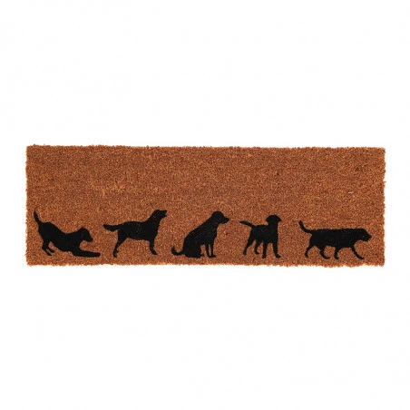 Magnifique paillasson en coco avec une reprĂ©sentation des diffĂ©rentes positions d’un chien. Son support fait de PVC empĂŞchera le paillasson de bouger lorsque vous l’utiliserez.