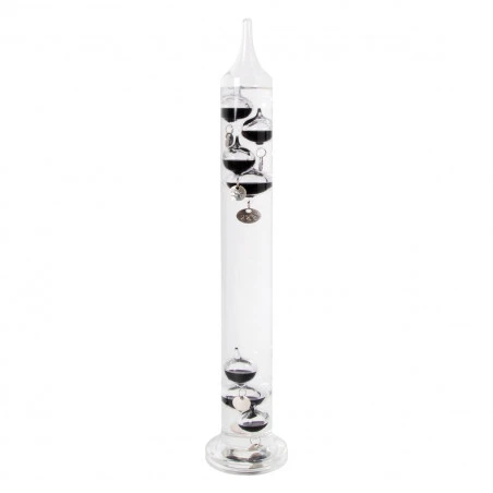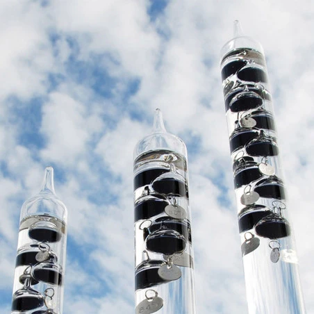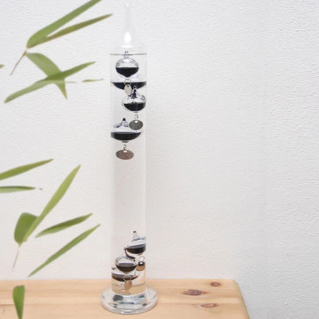 VĂ©ritable thermomètre de GalilĂ©e en verre contenant un liquide et les objets flottant permettant d’afficher la tempĂ©rature selon leur densitĂ©. Ce magnifique thermomètre de GalilĂ©e avec ses boules au liquide noir vous sera très utile pour afficher la tempĂ©rature et sera un très joli objet de dĂ©coration pour votre intĂ©rieur !