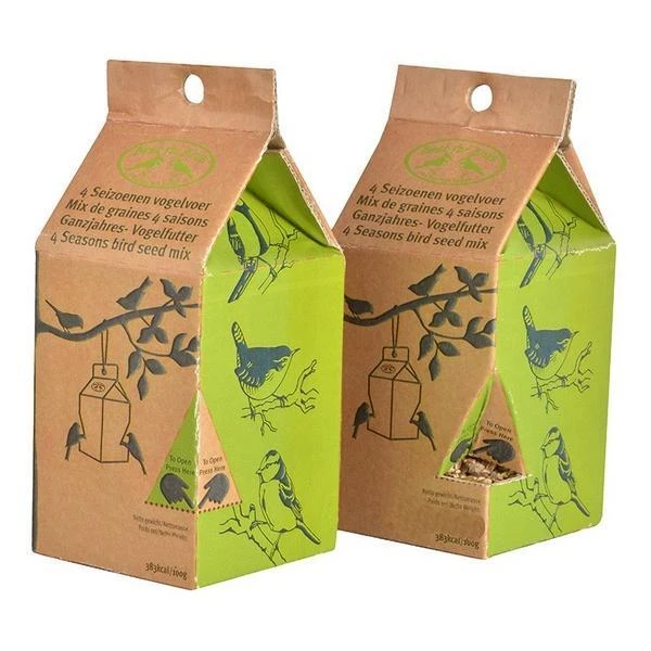 Eine tolle Möglichkeit, die Vögel in Ihrem Garten zu füttern. Das 4-Jahreszeiten-Vogelfutter verpackt in einer praktischen Brikettverpackung aus Pappe mit einem Seil zum Aufhängen.